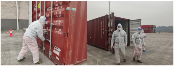 ? ? ? ?演練開始后,港口查驗(yàn)區(qū)工作人員迅速進(jìn)入實(shí)戰(zhàn)狀態(tài),對(duì)進(jìn)口集裝箱貨物進(jìn)行消毒和核酸采樣檢測(cè),模擬發(fā)現(xiàn)貨物檢測(cè)呈陽性后的處置場(chǎng)景,啟動(dòng)疫情防控應(yīng)急處置預(yù)案,有條不紊地開展消殺封控、轉(zhuǎn)運(yùn)隔離、信息報(bào)送等安全管控工作。