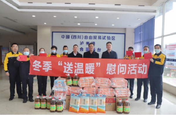 1月4日,省港投集團黨委委員、副總經(jīng)理楊軍一行到瀘州港務(wù)公司開展冬季“送溫暖”慰問暨安全環(huán)保督查。楊軍總代表集團公司向一線職工送上親切的新年祝福,向不畏嚴(yán)寒、堅守一線的員工致以最深的敬意,將集團公司黨委的關(guān)心和溫暖及時送到困難職工手中。